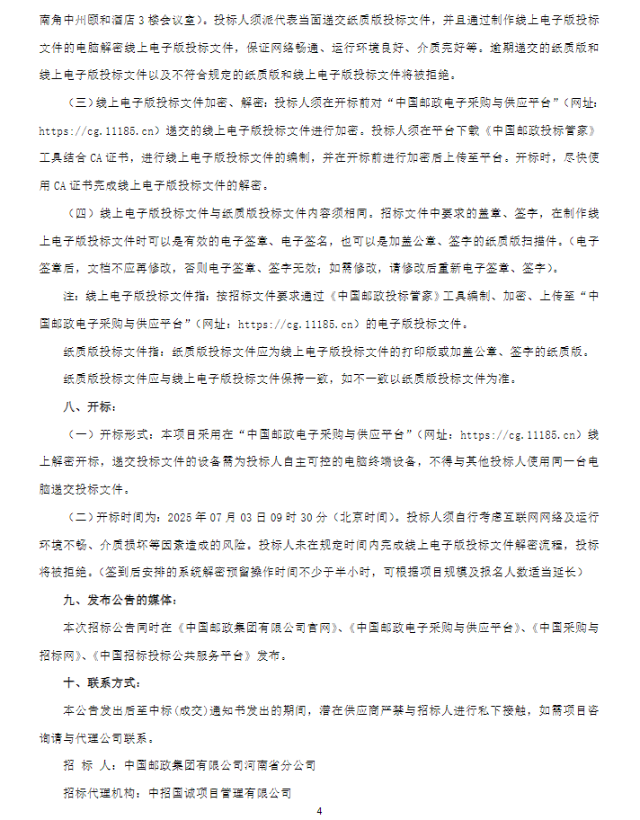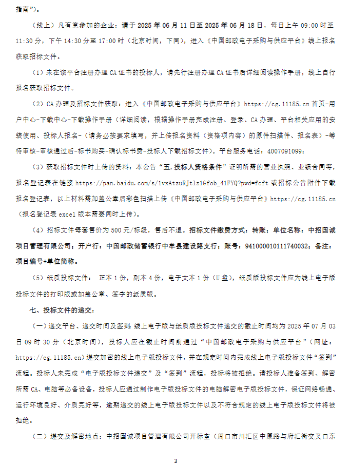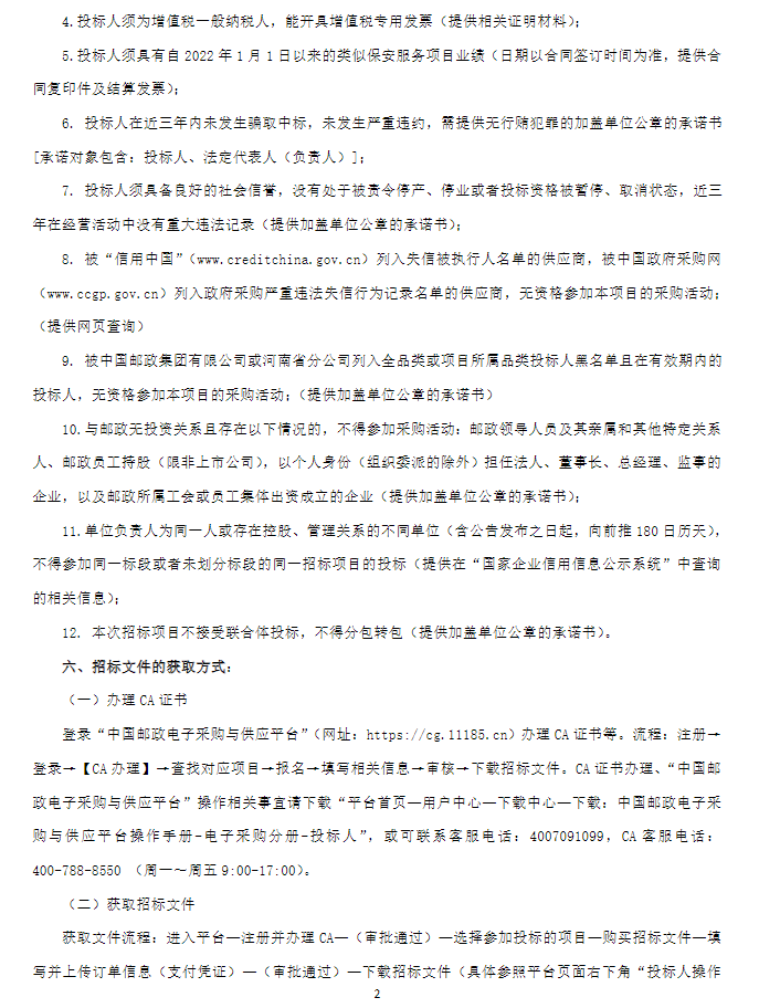 【中国邮政集团有限公司周口市分公司保安服务业务外包项目】招标公告