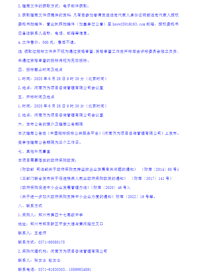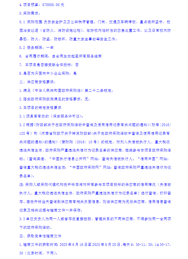 郑州市第四十七高级中学安保服务采购项目竞争性磋商公告