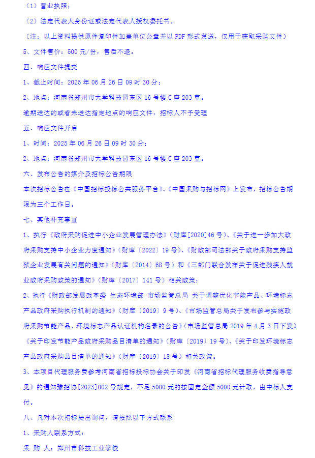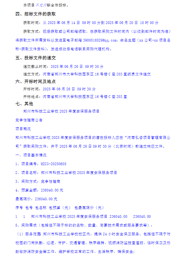 郑州市科技工业学校2025年度安保服务项目竞争性磋商公告