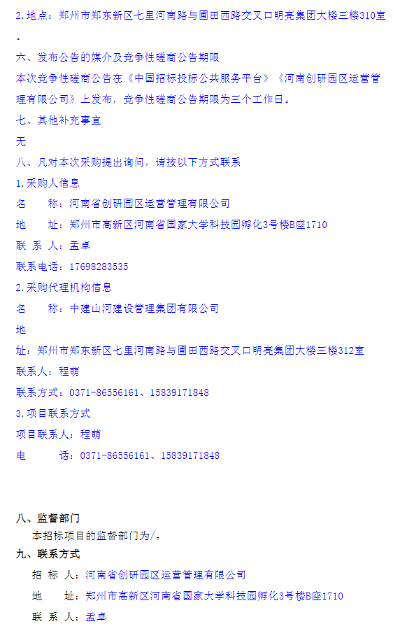 河南省科学院材料创新基地物业管理服务采购项目竞争性磋商公告