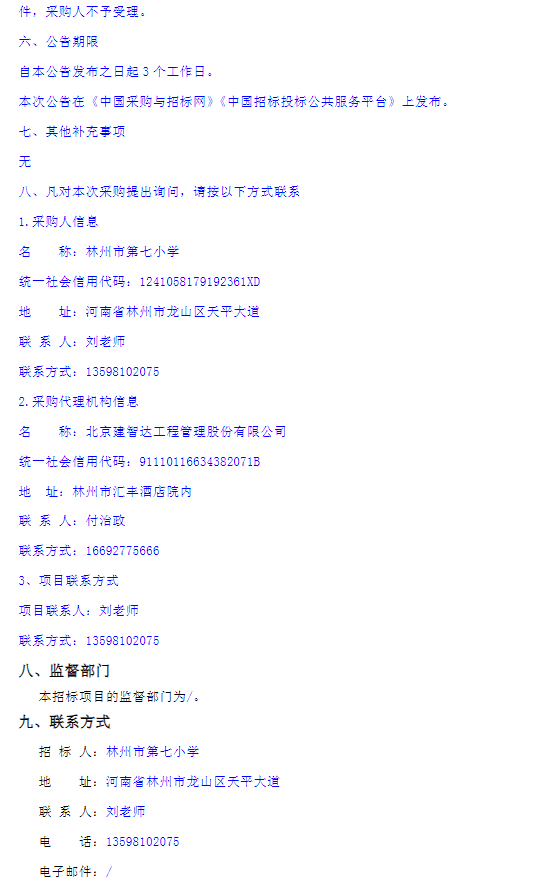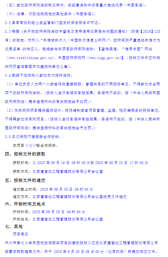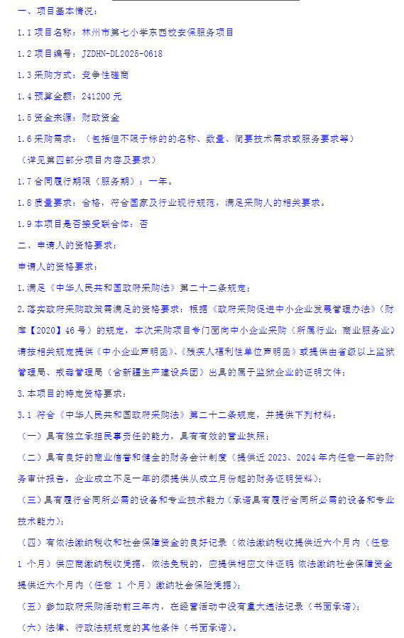林州市第七小学东西校安保服务项目竞争性磋商公告