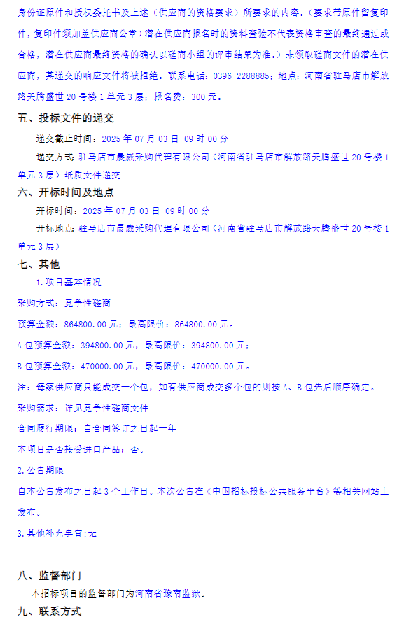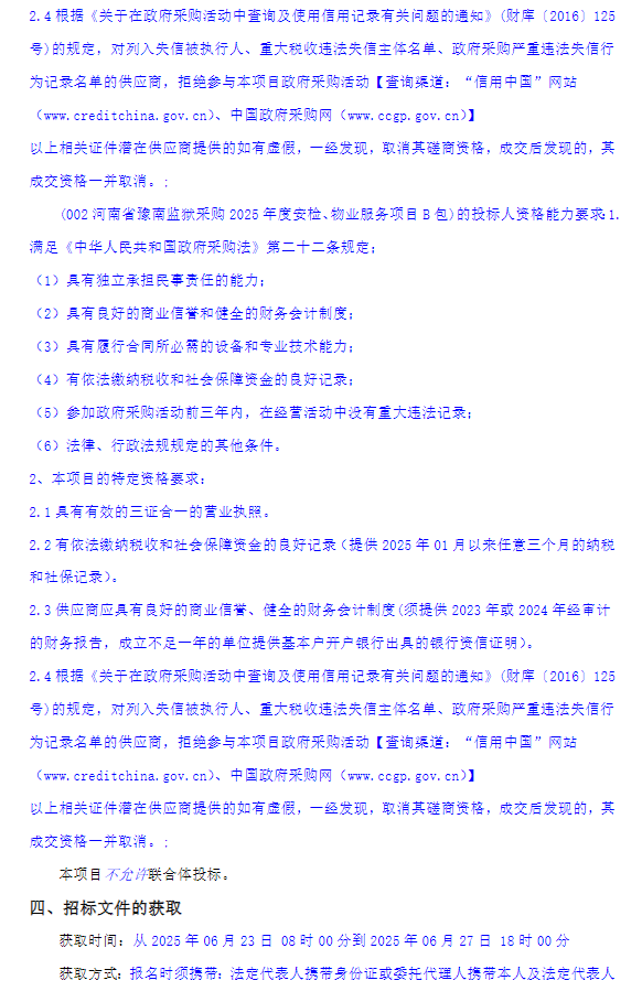 河南省豫南监狱采购2025年度安检、物业服务项目--竞争性磋商公告