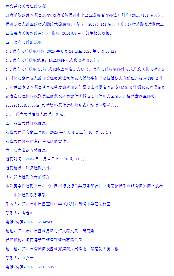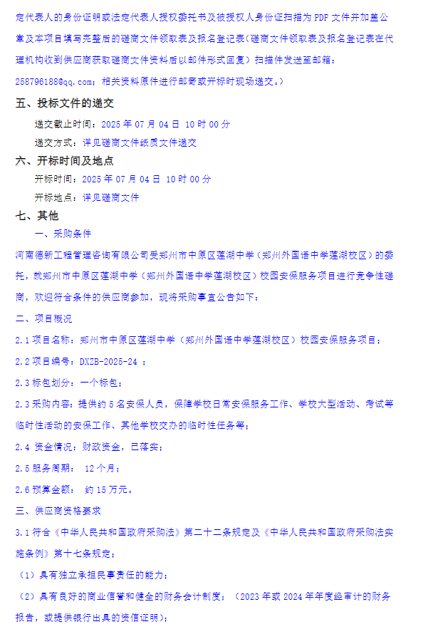 郑州市中原区莲湖中学(郑州外国语中学莲湖校区)校园安保服务项目竞争性磋商公告