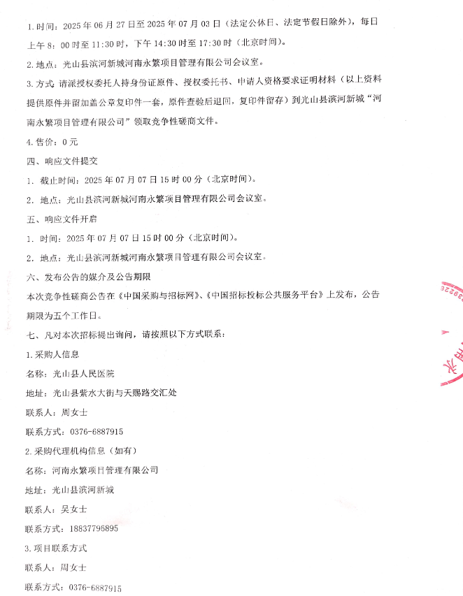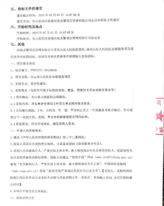 光山县人民医院安保服务项目竞争性磋商公告