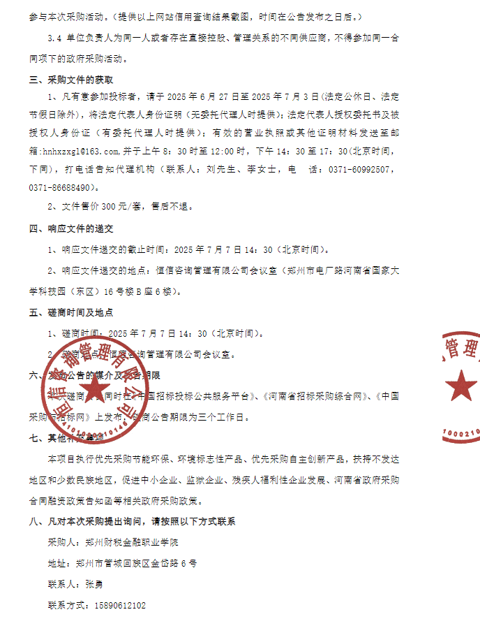 郑州财税金融职业学院新校区安保服务项目竞争性磋商公告