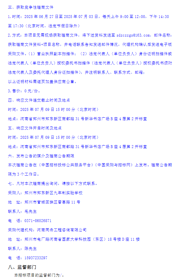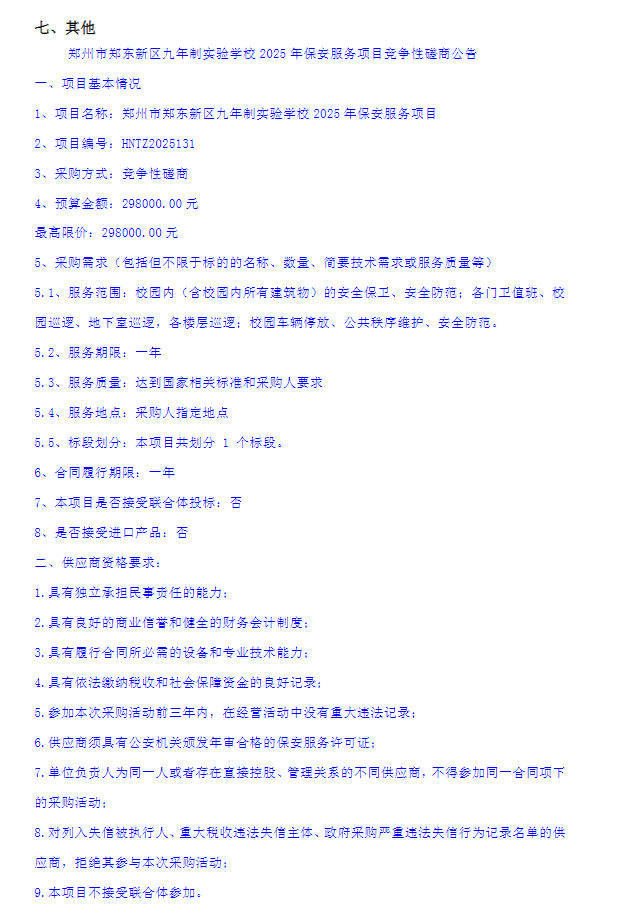郑州市郑东新区九年制实验学校2025年保安服务项目竞争性磋商公告