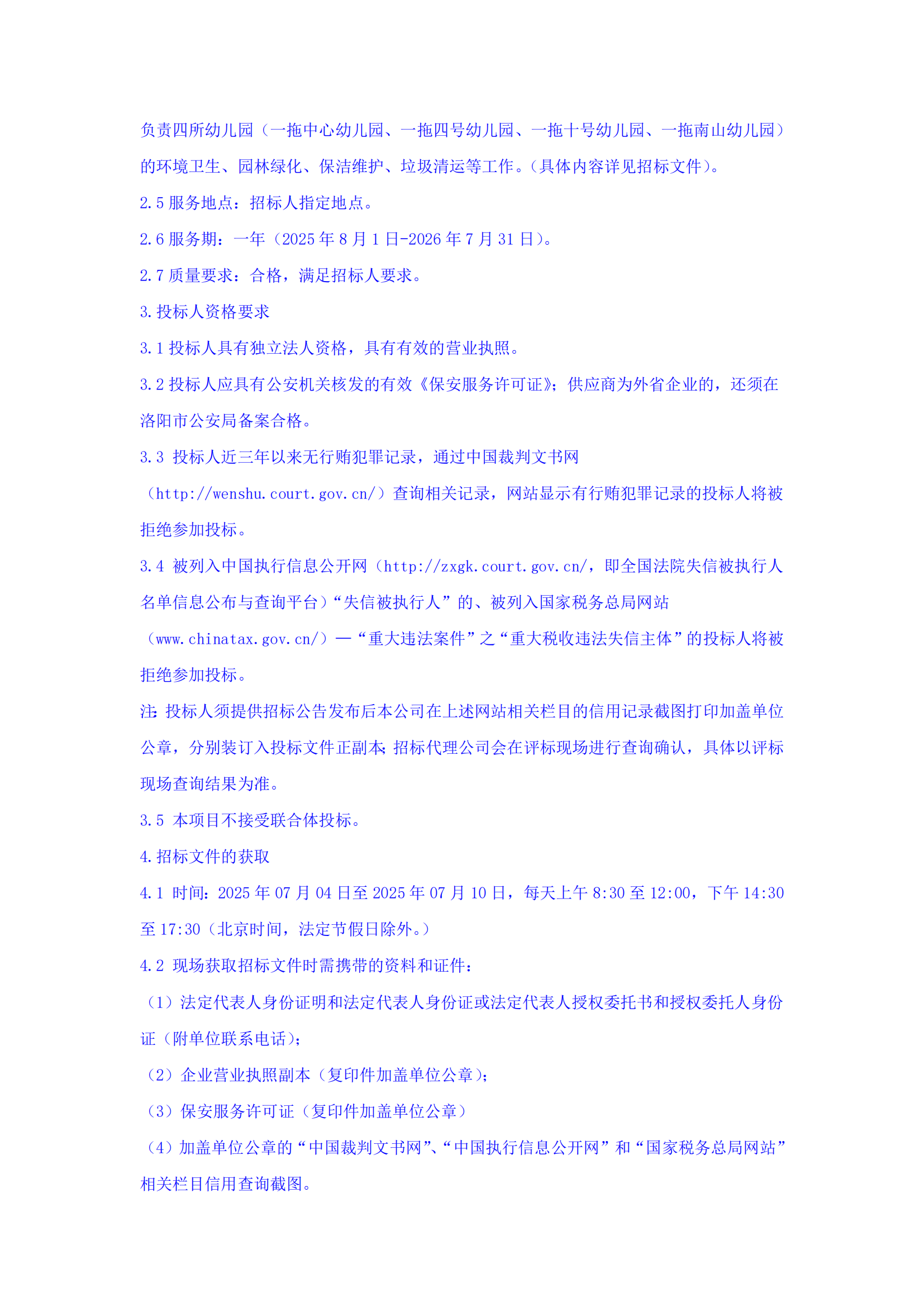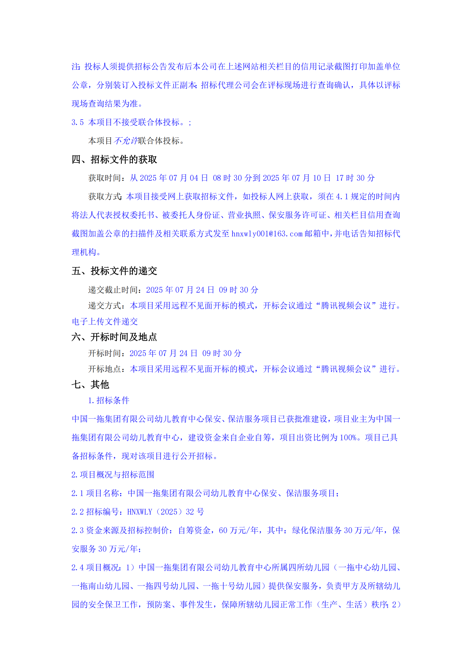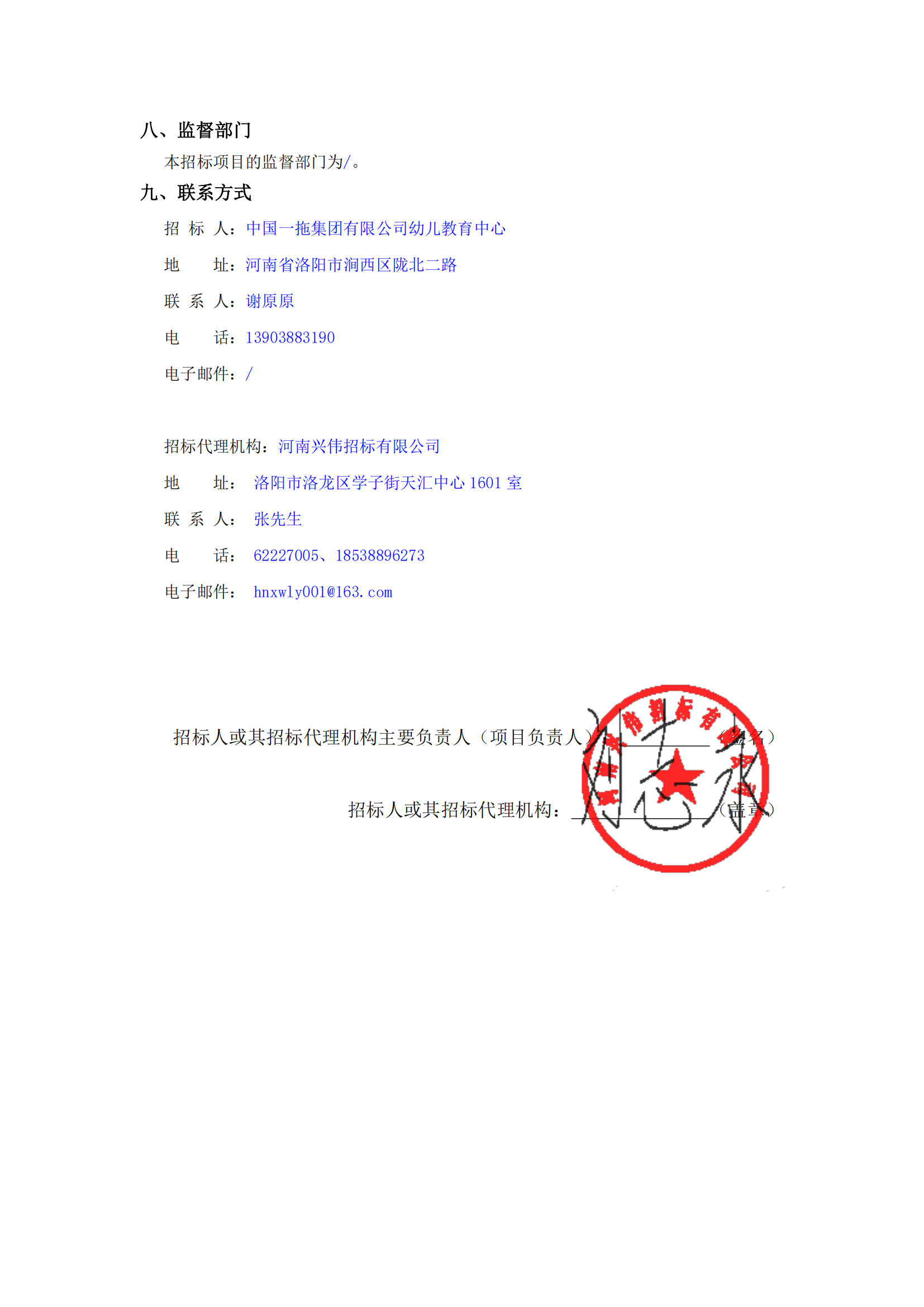 中国一拖集团有限公司幼儿教育中心保安、保洁服务项目