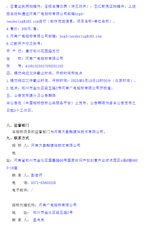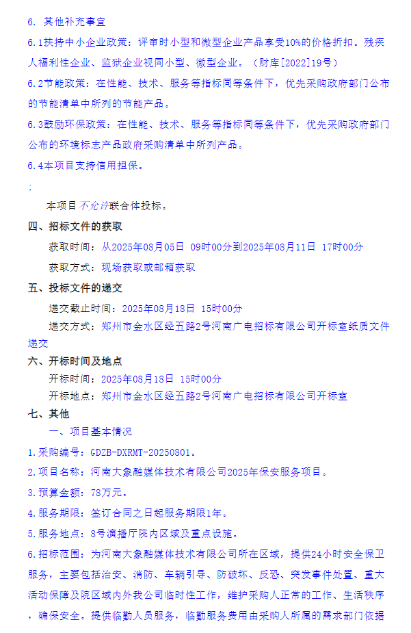 河南大象融媒体技术有限公司2025年保安服务项目竞争性磋商采购公告