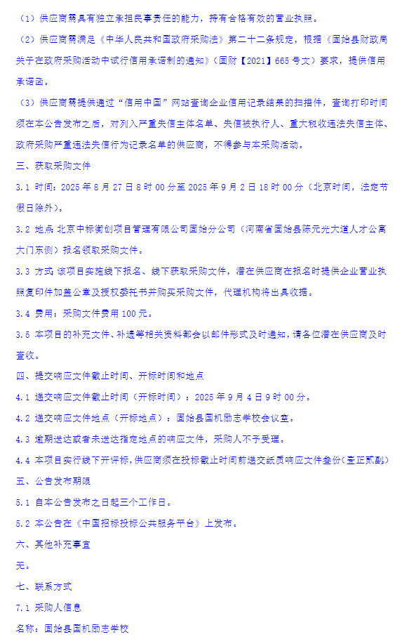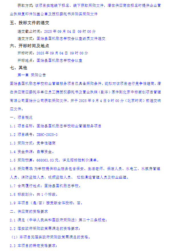 固始县国机励志学校物业管理服务项目