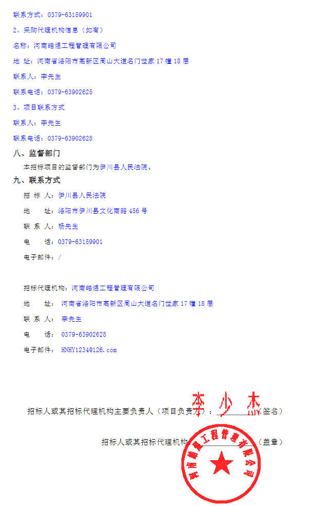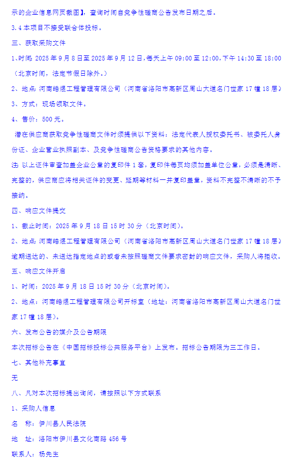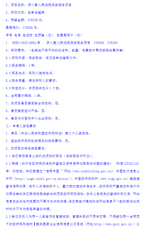 伊川县人民法院保安服务项目-竞争性磋商公告