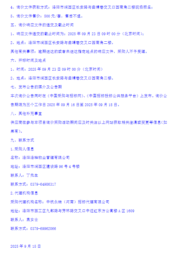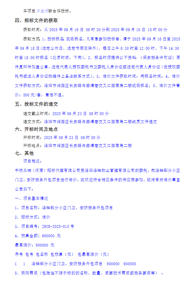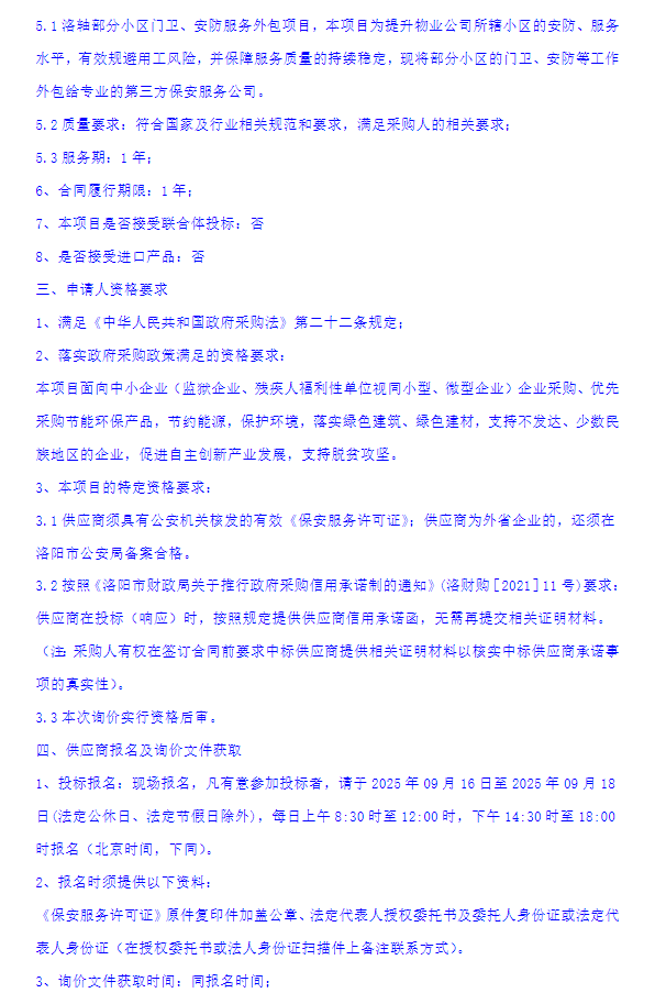 洛轴部分小区门卫、安防服务外包项目询价公告