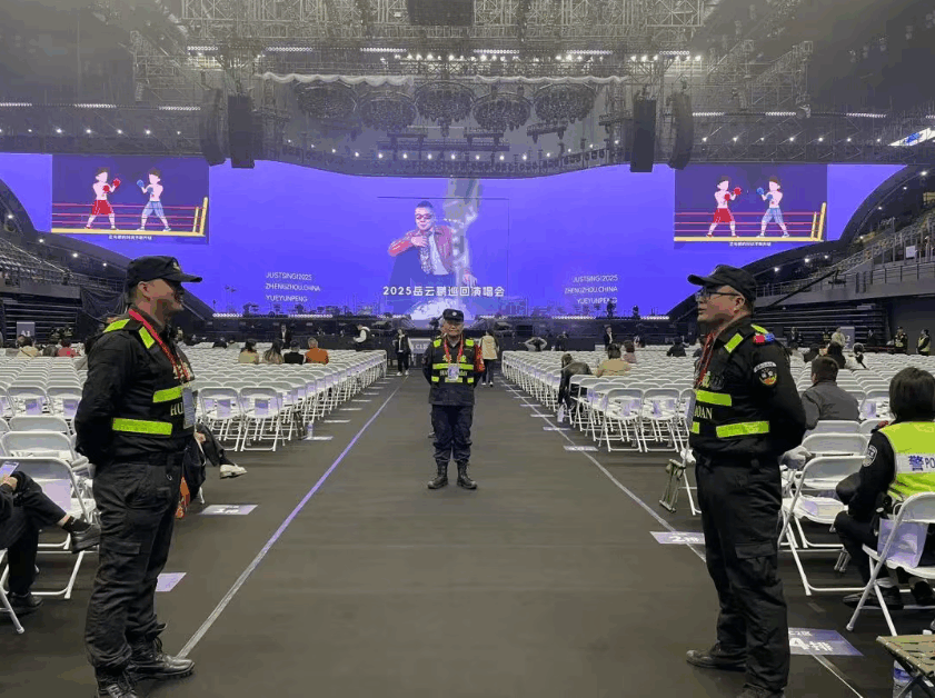 作为承载着家乡期待的演出,本次演唱会两场门票早早售罄,场馆内近1.1万座位座无虚席,从河北、安阳等地赶来的粉丝与本地观众汇聚一堂,奥体中心从午后便陷入热烈氛围。为应对大客流与高人气,河南华威保安集团提前一周启动筹备工作:多次勘察场馆内外动线,精准划分安检区、观众通道、后台缓冲区等关键区域,结合演唱会“互动性强、散场集中”的特点,制定全流程安保方案。