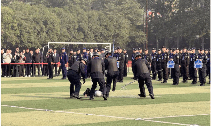 2025年11月3日至4日,郑州市第二十二届职工技术运动会保安员职业技能竞赛在郑州市人民警察实战训练中心隆重举办。竞赛开场前,郑州保安集团经开分公司队员配合无人机协同最小应急单元处突抓捕表演:无人机升空锁定目标、喊话警告,随后精准悬停释放抓捕网,实现非接触式控制,尽显科技赋能安防的创新力。