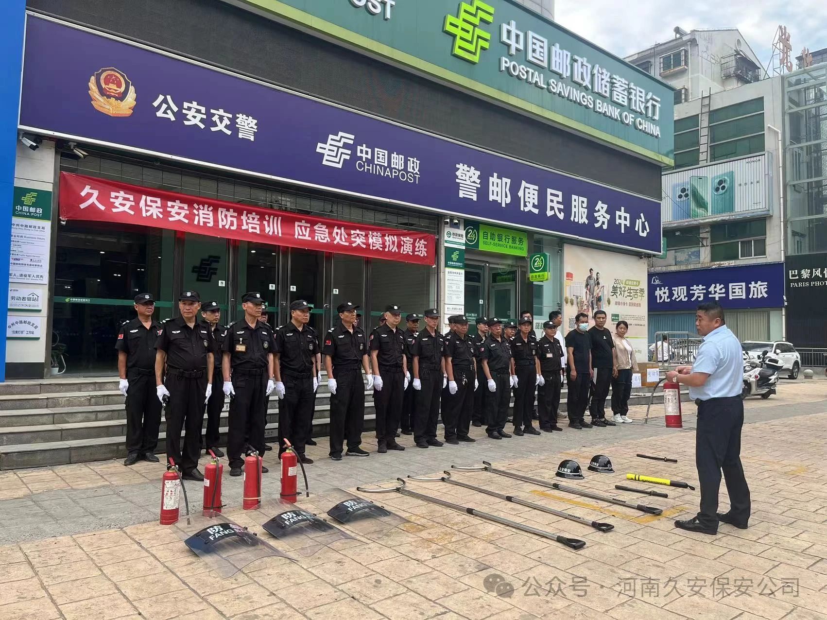 通过河南久安保安服务有限公司组织的2024年上半年消防培训、应急处突模拟演练,对进一步加强安全保卫工作,让队员们对金融机构安保的知识、消防安全知识得到了学习,对配备的器械使用方法,消防器材的使用方式,应急处突的方式有了更为深刻的认识。为银行财产的安全,做出有力的保障。