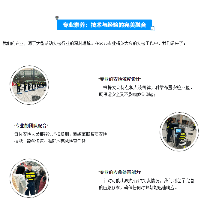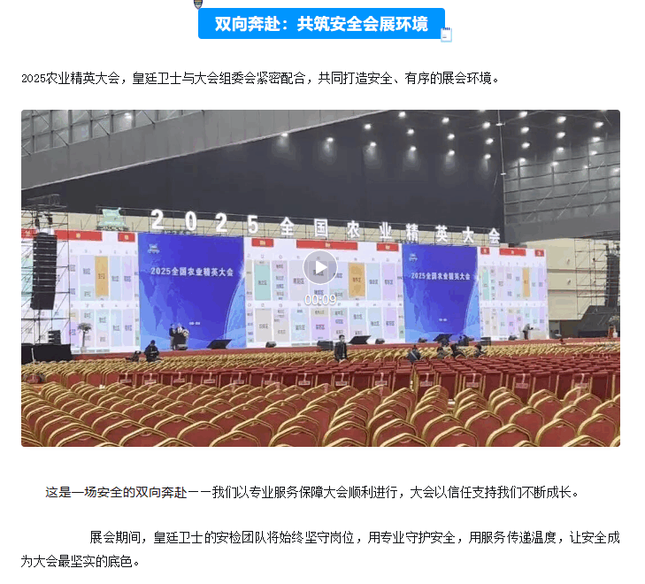 农业精英汇聚,共迎丰收与未来丨皇廷卫士护航2025农业精英盛会,安检任务圆满完成