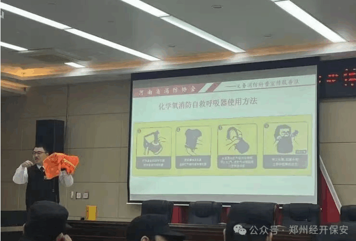 培训现场,讲师结合典型火灾案例(如河南本地火灾警示案例),拆解了火灾隐患排查、初期火灾扑救、人员疏散逃生等核心知识,还重点讲解了“四个能力”建设(检查消除隐患、扑救初起火灾、组织疏散逃生、消防宣传教育),让保安员们深刻认识到消防工作的“第一责任”。