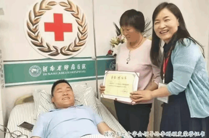 李刚同志成为造血干细胞捐献者,源于一次偶然的机会。2018 年4月中旬的一天,李刚带着孩子和老妈回老家看外婆,下午三点多,突然接到南阳市红十字会造血干细胞工作站的电话,2016年,在一次义务献血时,李刚了解到捐献造血干细胞可以挽救血液病患者的生命,于是留下了8毫升血样,成为一名光荣的造血干细胞捐献志愿者,这次与河北的一名白血病患者匹配上了。这是一个9岁的孩子,问李刚是否愿意帮助这个孩子,李刚当时一听没有多余的想法,什么也没有想就说,需要我怎么配合,怎么做?南阳市红十字会造血干细胞工作站的工作人员告诉他要保持身体健康、注意饮食、不喝酒、不献血、早晚锻炼身体,保持身体细胞的活跃状态。本来需要三个月的调养期,可是在将近一个月时间的五月十号,一个突发情况发生了,李刚同志接到通知,说这个小男孩病情极不稳定,需要直接去医院做体检及高分辨检测。 当时,李刚正在单位值夜班,第二天一早下班就去医院做了检测 ,等加急检测报告出来后,5月24日出发赶到郑州,每天早晚各一次到河南省肿瘤医院打动员剂,直至捐献造血干细胞完成,李刚同 志当时唯一的想法就是力所能及的去挽救一个鲜活的生命。 同时,李刚同志在爷爷一次重病住院手术,急需13袋血浆的事情也让他深刻地意识到,血液对患者的重要性,李刚同志毅然决然的参加了血站志愿者服务队,成为一名无偿献血志愿者,并一直未曾间断义务献血。李刚在岗位上默默无闻,不擅言谈,若不是这次捐献造血干细胞,他曾义务献血百余次的秘密仍将不被大家知道。