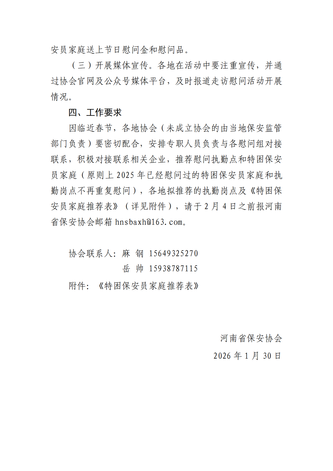 河南省保安协会关于组织开展“迎新春,送温暖”走访慰问活动的通知