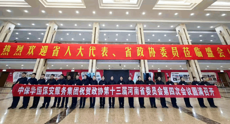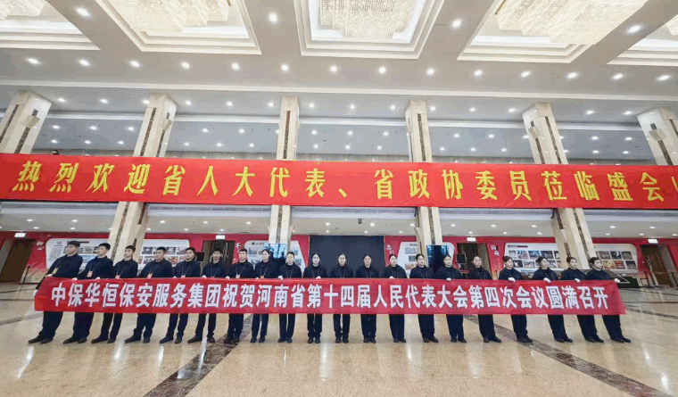2026年1月25日至30日,河南省第十四届人民代表大会第四次会议和中国人民政治协商会议第十三届河南省委员会第四次会议在郑州隆重召开。中保华恒保安服务集团以高度的政治责任感和专业的安检团队,圆满完成了本次两会的安保安检任务,为大会顺利召开构筑了坚实可靠的安全屏障。