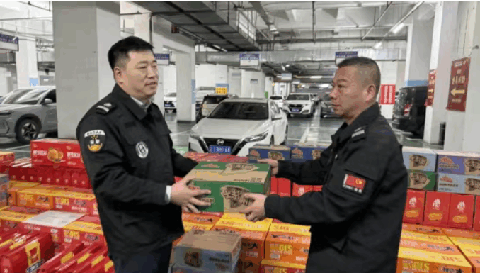 同天,管城分公司积极响应集团公司号召,组织节前慰问活动,向春节期间坚守在小区、厂区、学校门岗等一线保安队员送上春节的祝福与暖心的关怀。公司提前谋划、精心采购实用的慰问品。由公司经理刘勇带领,副经理王世超、尹海宁、朱永良一行人员,逐岗点走访慰问,将慰问品送到每一位坚守在岗的队员手中,把温暖送到大家的心坎上。