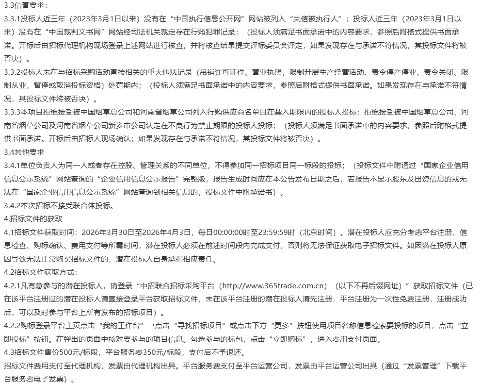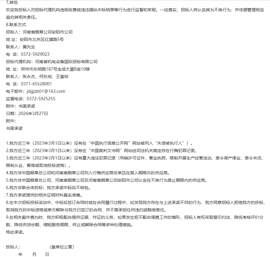 河南省烟草公司安阳市公司2026-2029年安阳汤阴县、内黄县分公司保安服务项目招标公告