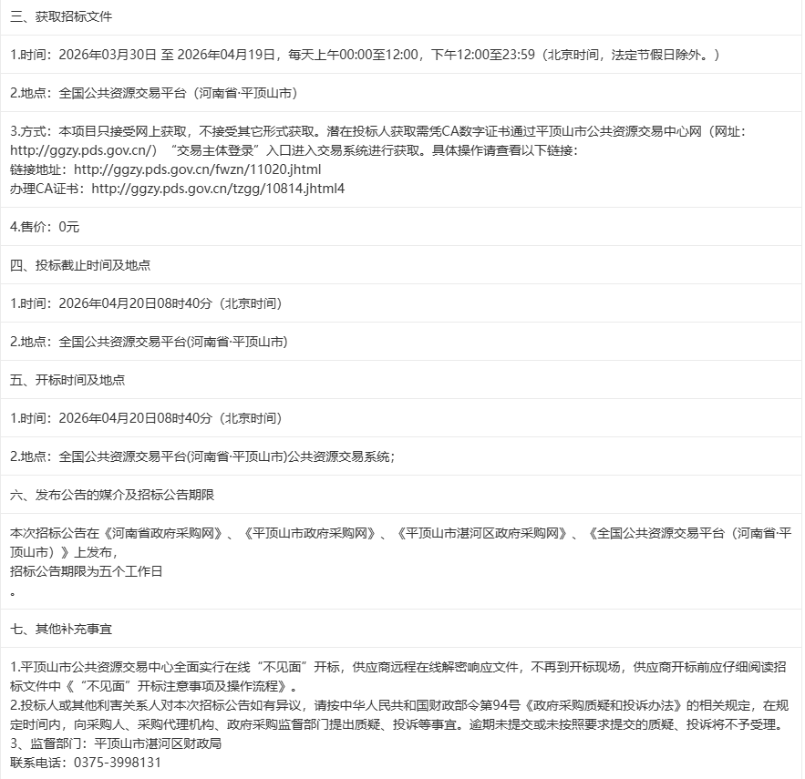 【平公资采2026247号】平顶山市湛河区机关事务中心区机关保安服务采购项目-招标[采购]公告