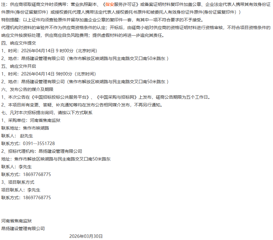 河南省焦南监狱外聘保安服务项目竞争性磋商公告