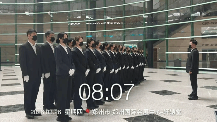 论坛安检队员,则用全天坚守诠释担当——每日清晨6点半,队员们准时集合,迅速奔赴会展中心、艺术中心两个场地,快速进入工作状态。从清晨到日暮,全程值守、站姿标准,即便双腿僵硬、脚步沉重,也从未停歇,用一整天的坚守,守护着论坛的安全有序。
