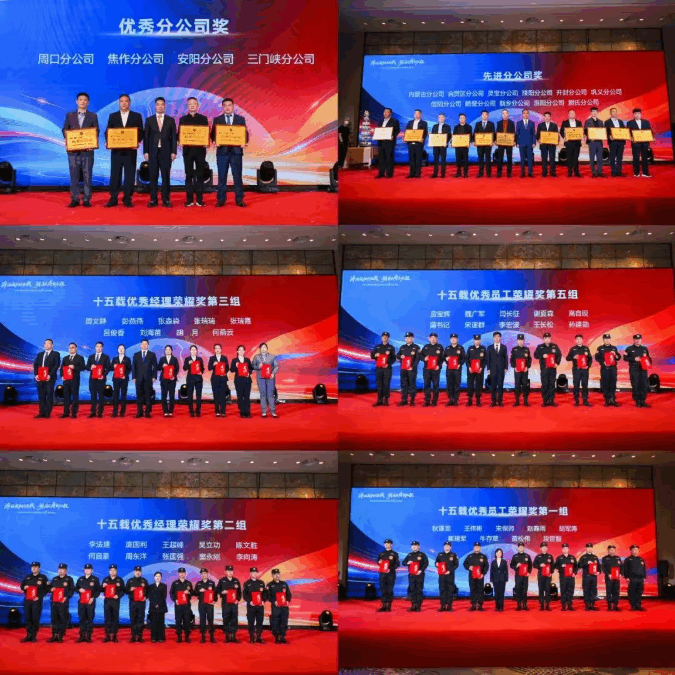 庆典最动人的环节是隆重表彰长期奉献者。“十五载优秀员工荣耀奖”、“十五载优秀经理荣耀奖”、“先进分公司奖”、“优秀分公司奖”依次颁发。百余位陪伴企业成长十余年的优秀员工、三十余位担当作为的管理骨干,以及十余家业绩卓越的分公司代表登台领奖。荣誉证书与掌声,凝聚着集团对他们最高的礼赞。优秀员工代表宋留成、优秀经理代表王守辉发言,没有华丽辞藻,只有十五年沉淀的朴实与真诚,令人动容。这些平凡人的故事,正是基层社会治理最坚实的底色。