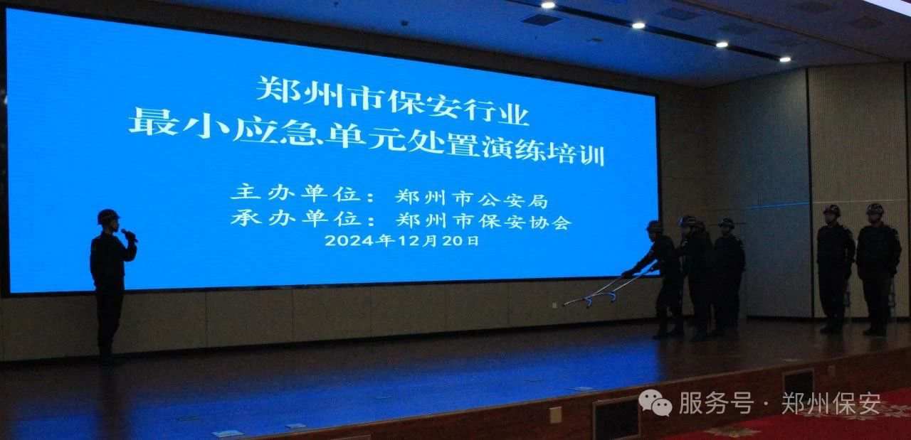 12月20日,郑州市公安局治安支队联合郑州市保安协会在经开区管委会举办警保联勤联动暨最小应急单元处置演练培训会,汇聚280余名保安从业单位负责人及培训管理人员。作为会员单位,郑保集团党委委员、纪委书记钞龙喜及分(子)公司负责人受邀参会。会议旨在提升保安团队风险防范和应急处置能力,推动最小应急单元处置建设。