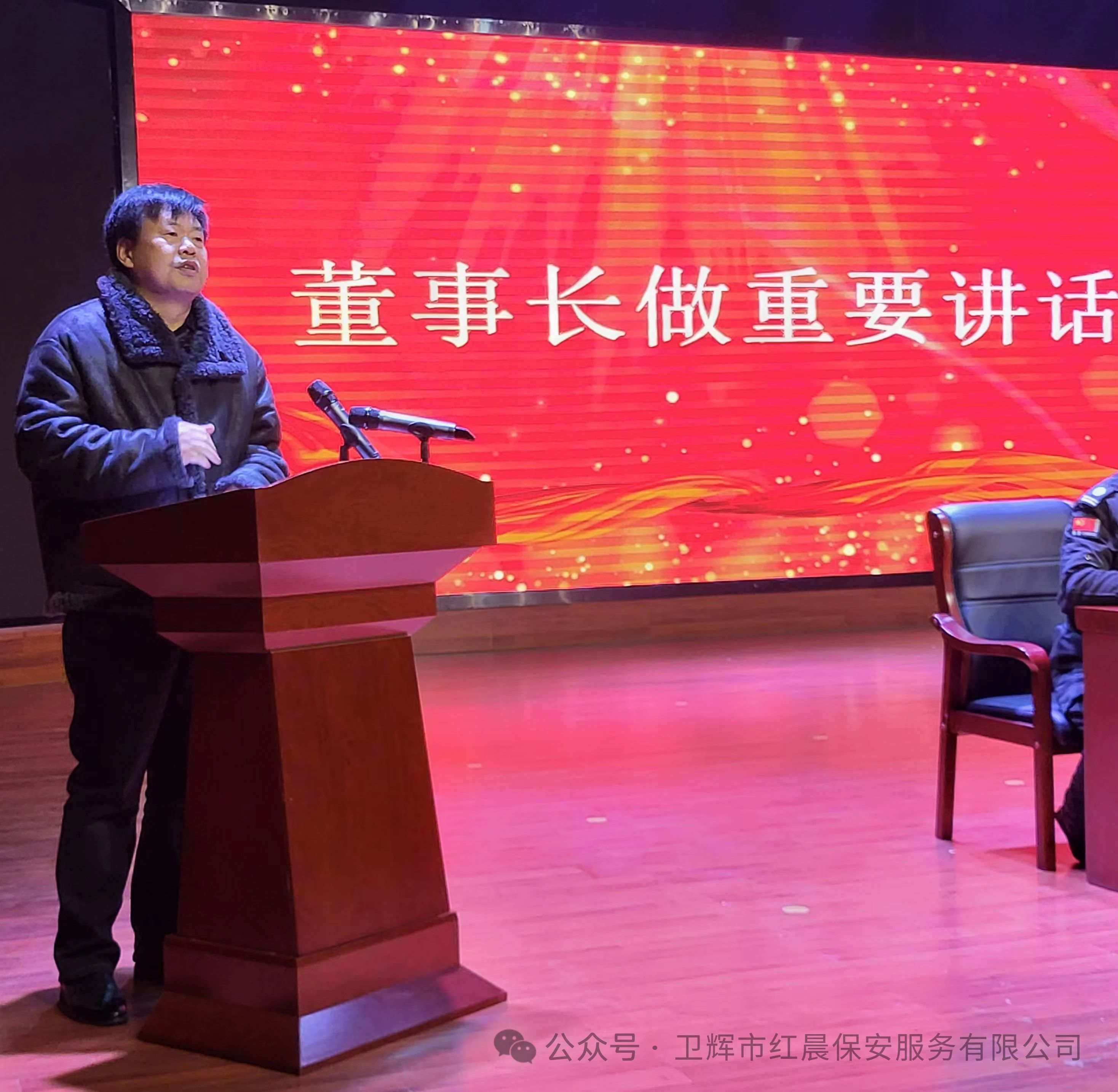 市公安局治安大队大队长靳玉文发表了指导讲话,对获奖的集体和人员表示热烈祝贺,并对红晨保安公司2024年的工作给予了高度评价。