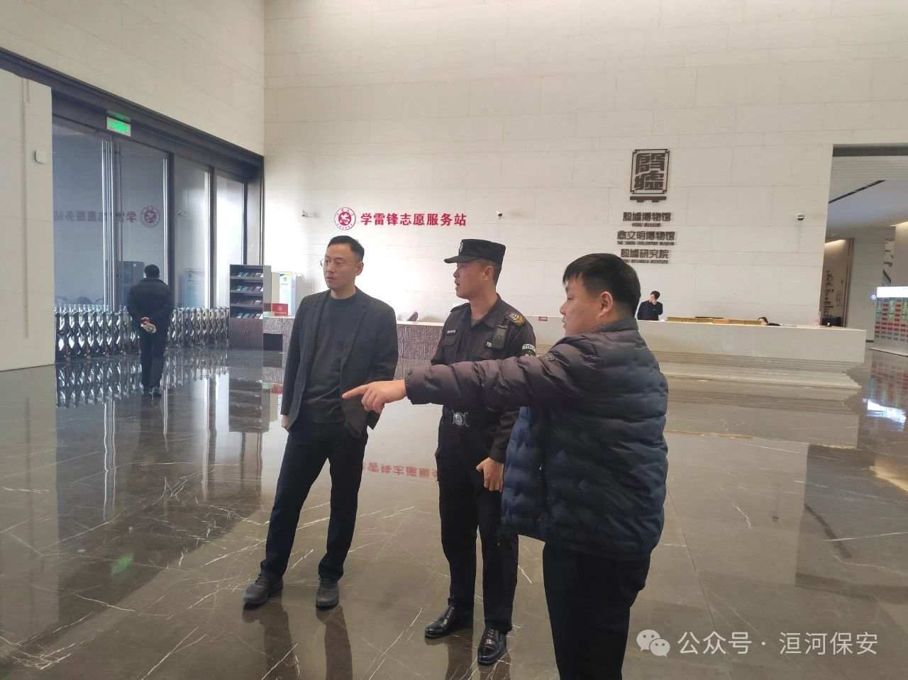 在大邑商博物馆,鹰翔保安公司同仁实地考察公司派驻该博物馆的安保工作,详细了解安防系统的布局与运行情况,包括监控设备的覆盖范围、报警系统的灵敏度以及与场馆工作人员的联动机制。同时,还观摩了安保人员的日常巡逻,对公司的管理模式和细致服务给予高度评价。