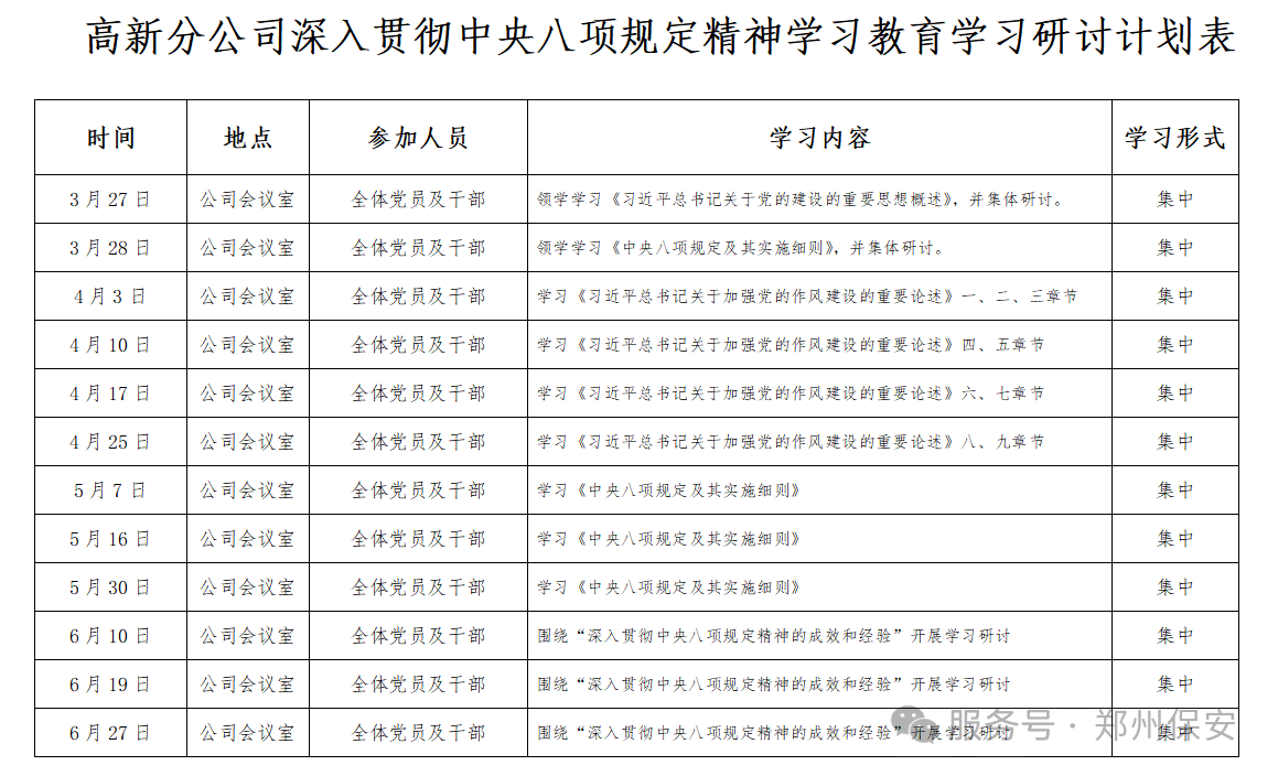 中原分公司党支部:开展深入贯彻中央八项规定精神学习教育,是今年党建工作的重点任务。要切实把思想和行动统一到党中央决策部署上来,扎实开展学习教育,确保抓出高质量好效果。各级党员干部既要作出示范,又要扛起主体责任,在“学习、落实、查摆、台账、制度完善”各个方面深入落实。各部门、各级人员要突出重点,严格落实执行集团公司要求,吸取经验教训,结合实际列出问题清单,坚决有力抓整改整治,确保八项规定精神落实。