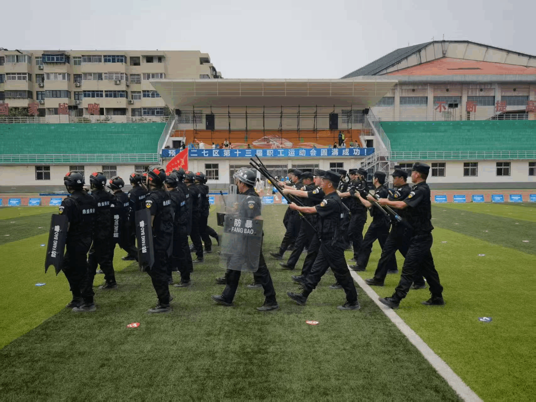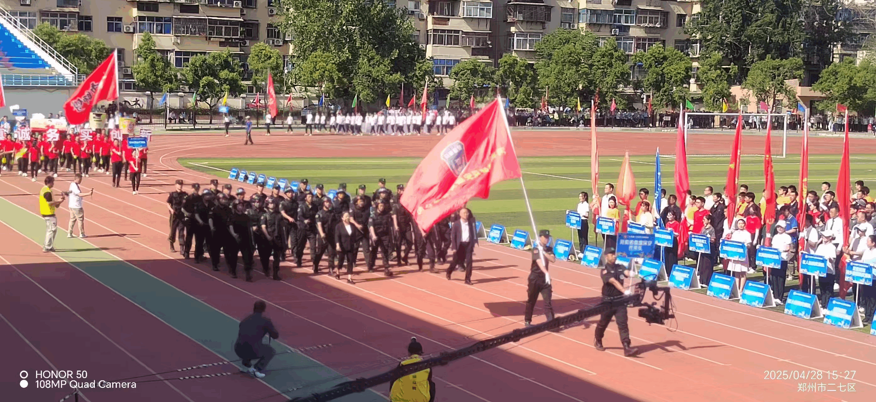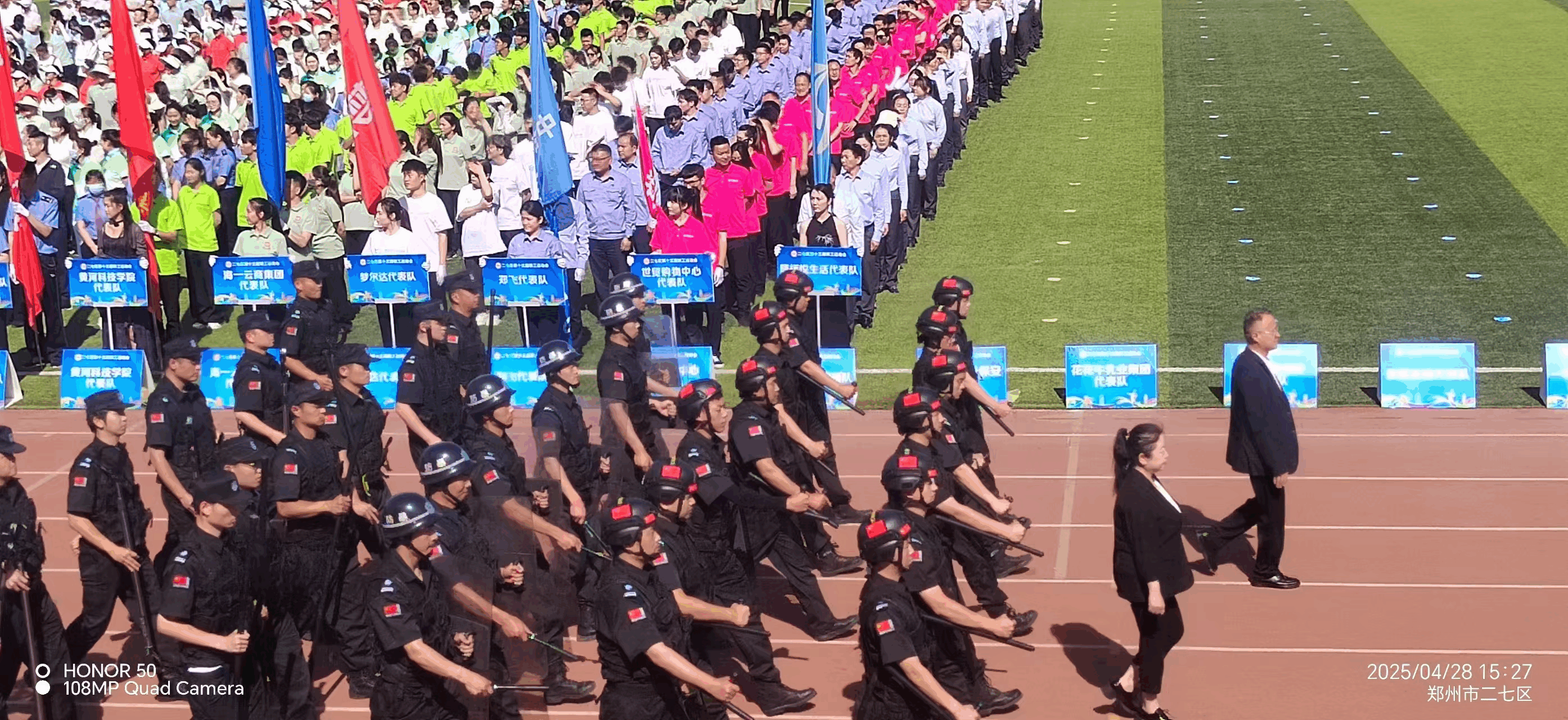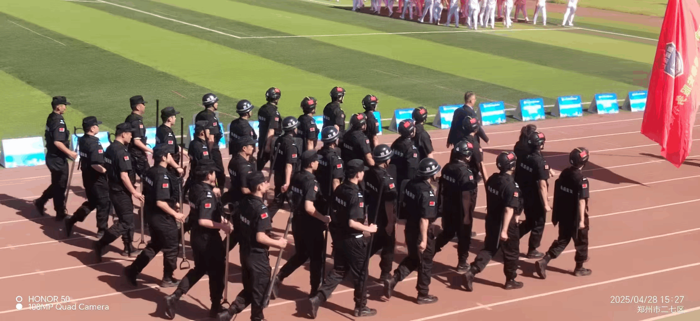 4月28日下午,郑州市二七区第十三届职工运动会开幕式上,在河南鼎盛保安公司副总经理胡杰、周萍的带领下,一支由40名保安队员组成的方队以整齐划一的步伐、昂扬挺拔的姿态惊艳全场,成为开幕式上一道独特的"安全防线"。