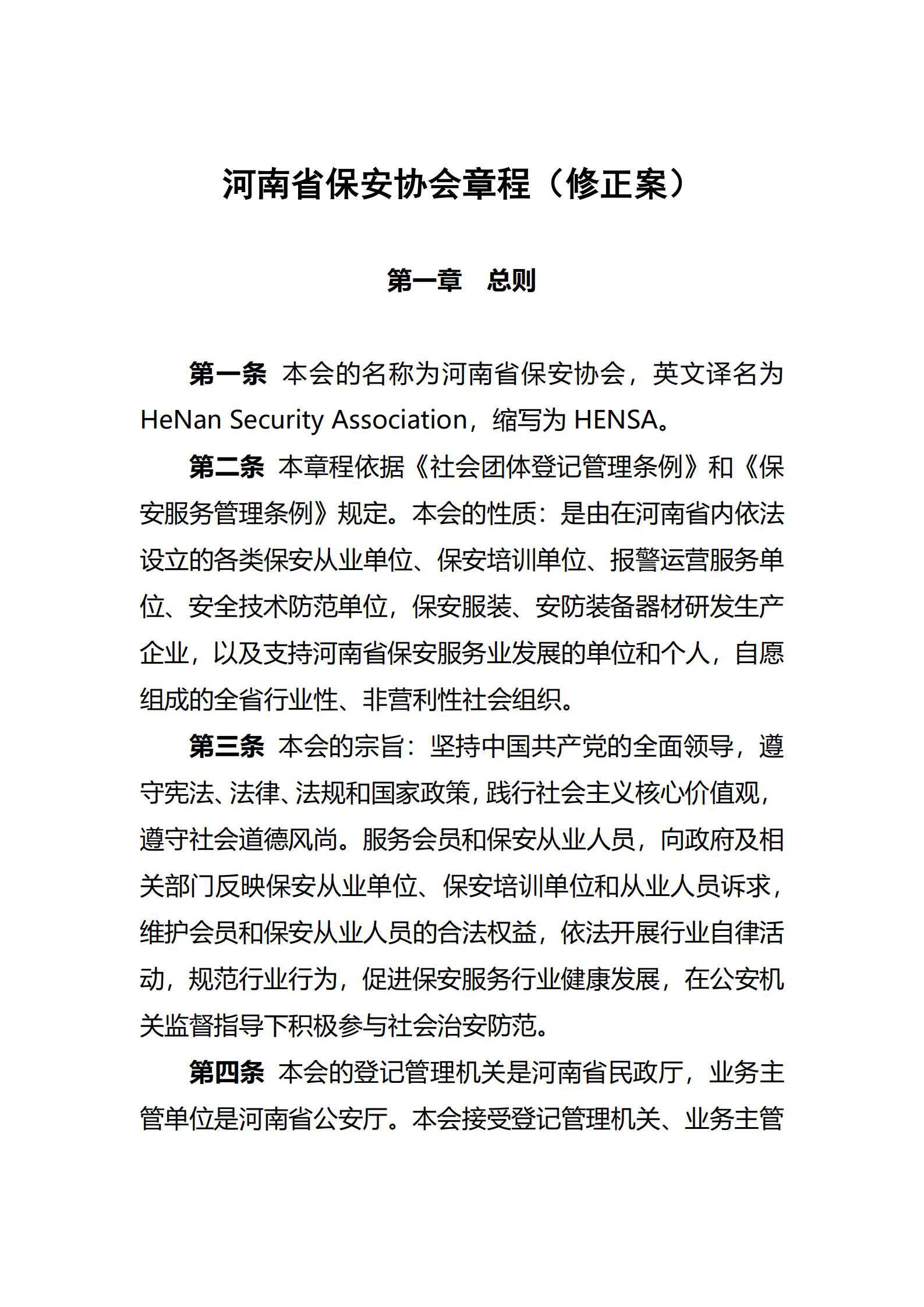 关于印发《河南省保安协会章程》 (修正案)的通知