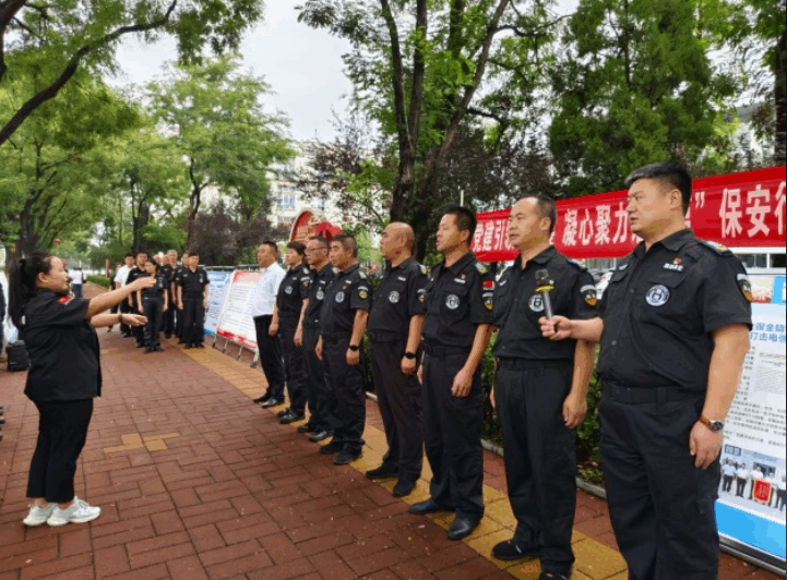 集中宣传活动同样精彩纷呈。协会制作了展板、条幅,设置安防器材展台进行展示。来自鹤壁市鹏翔保安服务公司的保安员以整齐的方队合唱《歌唱祖国》《没有共产党就没有新中国》《打靶归来》等红歌、军歌,为活动增添了浓厚的红色氛围。