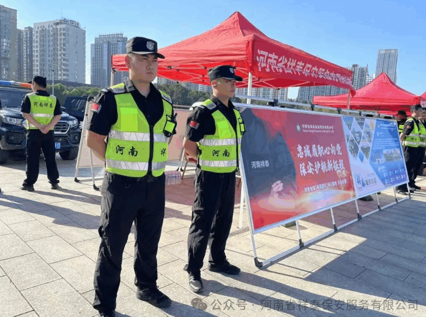 2025年7月24日,全国保安宣传日之际,河南省祥泰保安服务有限公司积极响应行业号召,在漯河会展中心参与了由漯河市公安局特殊警务支队和漯河市保安协会主办的宣传活动,活动以“党建引领促发展,凝心聚力谱新篇”为主题,旨在展示保安行业风采,加强警保联动,共筑平安漯河。