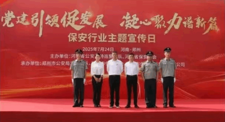 7月24日,中国第七个保安行业主题宣传日活动在郑州紫荆山公园隆重举行,主管部门及行业协会相关领导出席活动,以“党建引领保安服务,共筑平安和谐社会”为主题,全面展现新时代保安队伍的使命担当与精神风貌。