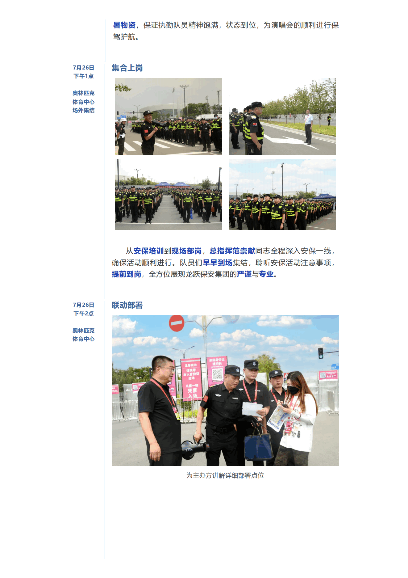 龙跃保安集团高度重视此次安保任务,成立安保工作小组,由总经理范崇献亲自担任本次安保任务的总指挥。龙跃保安集团提前谋划,周密部署,积极响应主办方和公安机关等组织的安保要求,制定精细安保方案,层层压实责任,确保演唱会能够安全有序地进行。