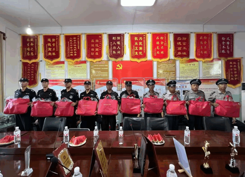 随后,公司为10名优秀退伍军人颁发精心准备的礼品,鲜红的礼品袋承载着对他们军旅贡献与保安工作付出的双重肯定。优秀退伍军人代表走上台前,分享军旅故事与投身保安工作的感悟,从保家卫国的绿色军营,到守护群众安全的安保一线,不变的是“为人民服务”的初心,朴实话语引发全场共鸣。