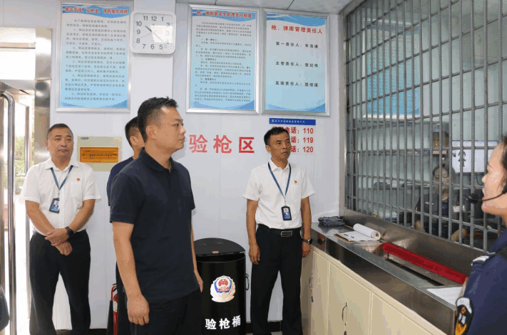 2025年9月2日,河南省公安厅治安总队副总队长赵万铨、支队长刘玉华、郑州市公安局治安支队副支队长张新涛一行,到荥阳市保安服务有限公司押运大队调研指导金融守押一体化系统建设、运行及安全管理工作。公司党总支书记、董事长朱浩谦、党总支副书记徐增光、总经理朱春领等陪同调研。