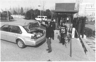 对于事先有可靠情报的物品查验,待拦截特定人、车之后,告知驾驶员打开车窗,出示驾照等相关证件,按保安携犬规定及程序查验证件(见图2-21)。