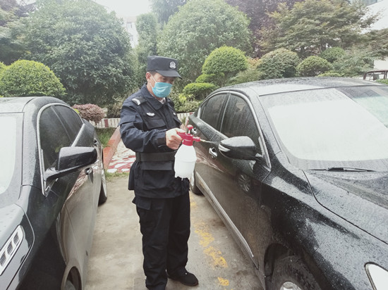 为此,张中龙成立了以自己为组长,14名保安员为成员的临时疫情防控工作小组和党小组,并制定了社区疫情防控预案。在人员不足和任务繁重的情况下,张中龙和队员们商量把原来的“三班勤务轮换”变成“两班倒”,全员上岗,充实勤务力量,延长工作时间,加班加点工作。同时,为保护好队员安全,免受感染,确保疫情防控工作顺利展开,张中龙协调物业公司及时为队员配置了防护用品,口罩400个、防护手套200双、消毒液900公斤、医用酒精10箱、体温计10个及红外测温仪8个。