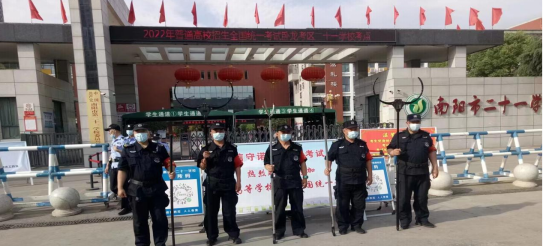 千万家庭牵挂,莘莘学子期盼。6月7日至6月8日,一年一度的高考如期而至。南阳市保安服务公司党委高度重视,按照市公安局党委关于高招安保工作统一安排部署和市公安局治安支队的具体要求,结合提供保安服务设置考点相关学校的安保工作实际,积极制订安保工作方案,动员和教育参保队员牢固树立大局意识、责任意识,积极协助公安民警和校方有关人员严把“三关”——即严格把好疫情防疫关、热情服务关和安全护卫关,着力维护校园秩序,及时消除安全隐患和漏洞,解决高考中可能出现的各类问题,为广大考生营造一个安静、温馨、祥和的高考环境。