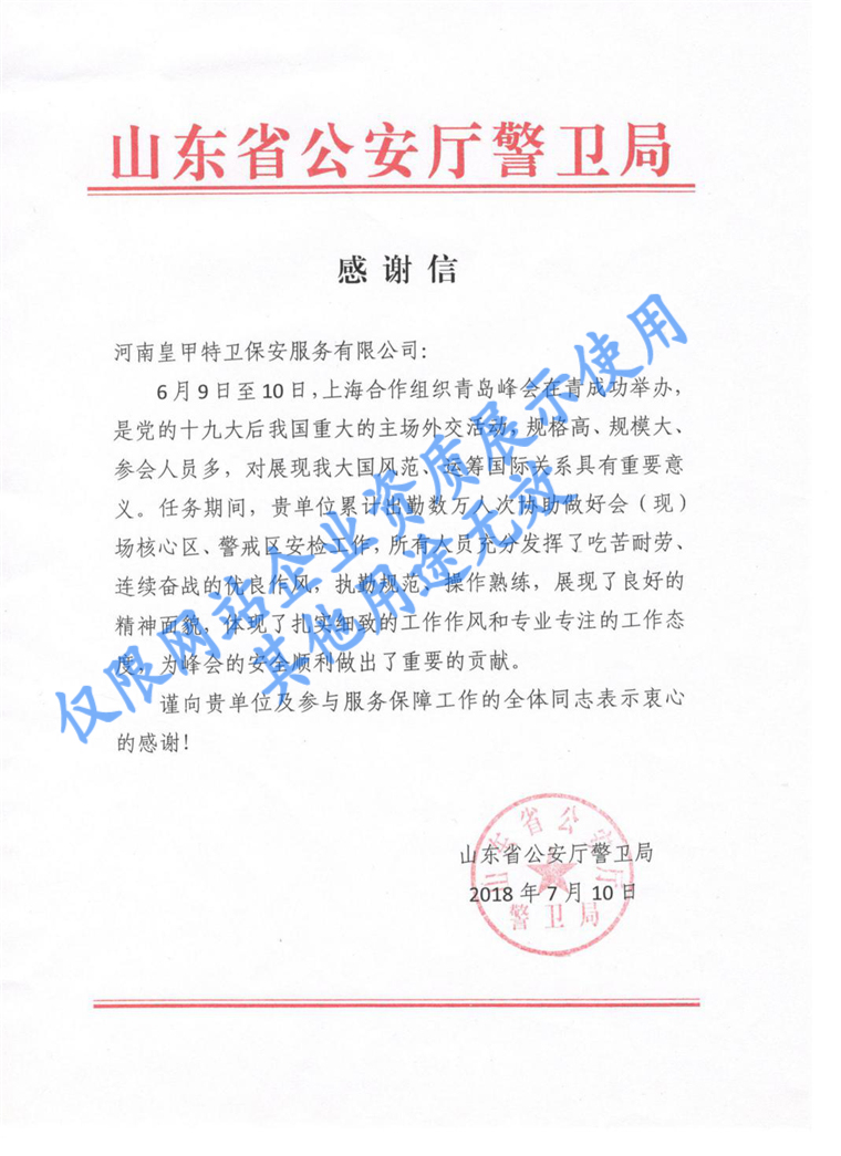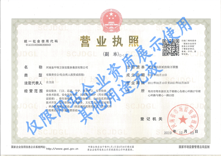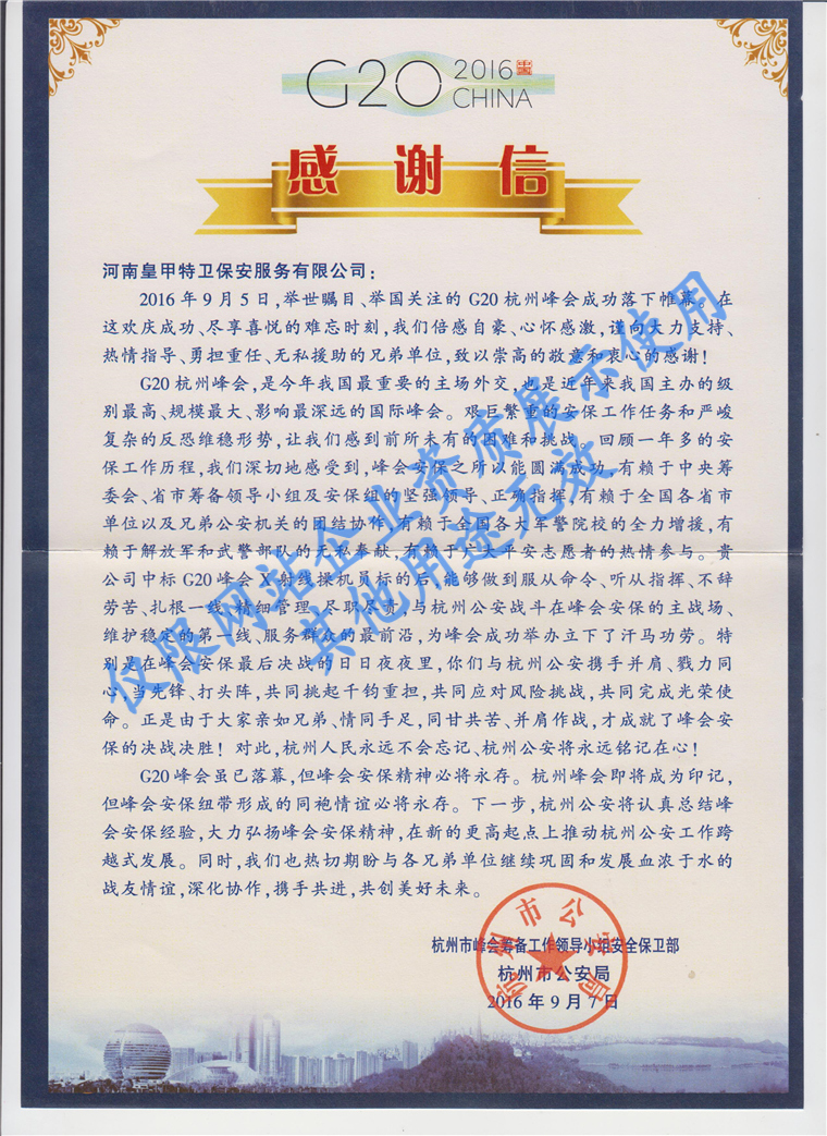 集团旗下有多家保安公司、国际安全顾问公司、保安职业培训学校、停车场管理公司等,企业项目遍及郑州、北京、深圳、成都、武汉、呼和浩特、青岛、香港等多个城市和地区,员工已达万余人。皇甲特卫是G20杭州峰会、上合组织郑州峰会、金砖五国厦门峰会、中欧政党高层论坛经贸对话活动、上合组织青岛峰会、内蒙古自治区七十周年大庆等国际国内大型会议安保、安检服务供应商,已连续多年为黄帝故里拜祖大典、金鸡百花电影节、郑州国际航空展、中超联赛河南建业主场赛事等大型国际国内活动提供专业安保及安检服务。