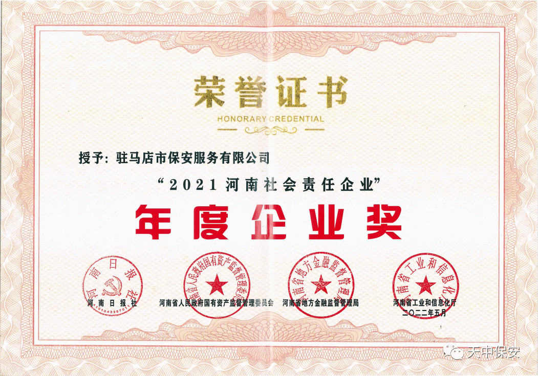 【企业风采】驻马店市保安服务有限公司被推选为“2021河南社会责任企业"