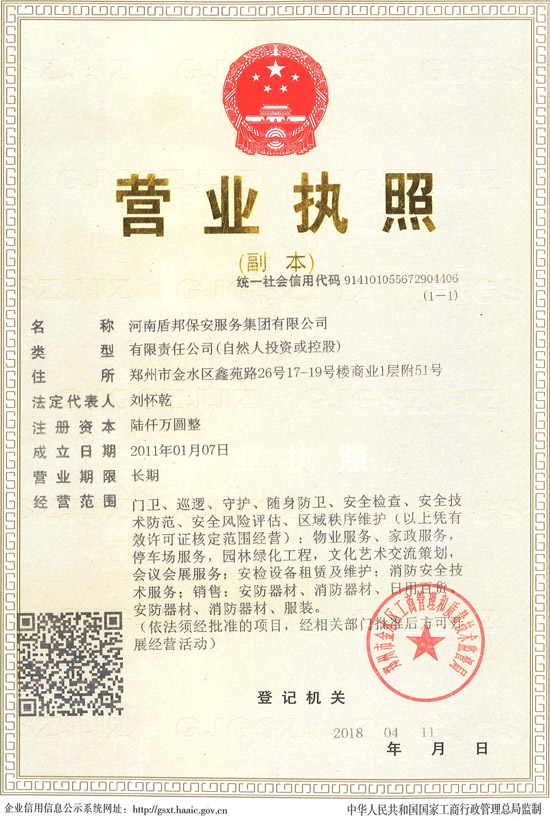 2011年,盾邦保安公司成立,是河南省公安厅批准的首批民营性质的保安企业。
