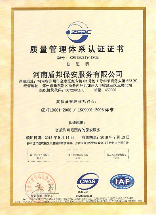 保安服务:河南盾邦保安服务有限公司是中国保安协会、郑州市公共安全防范行业协会会员单位,现下设5个保安大队,12个独立分队,并组建了富有特色的特保大队,分别为党、政、军、企事业提供个性化安保服务;公司建立了拥有各类技术人才的技术防范团队,获得了河南省公安厅颁发的安防资质,以专业化、规范化的服务理念,以人防、技防相结合的服务方式,针对每一个护卫目标,都精心设计与其相适应的最佳安保方案,是一支年轻而有实力的安保团队。