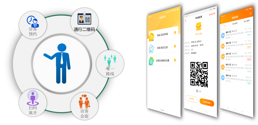 对于外来人员管理,通过线上流程管理彻底避免了依靠纸质文件登记、电话核实等落后手段造成的管理漏洞。既不会矫枉过正,也不会放任自流,通过业主小程序访客预约系统,将所有外来访客出入核查工作放在线上,以二维码、人脸识别等方式限制外来人员可通行区域,精确把握外来人员的出入管理,让守序访客畅通无阻,让无端闯入者无路可走。