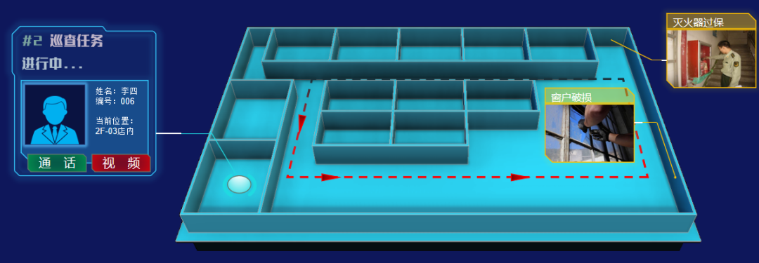 在社区日常运行中,指挥中心可对巡防人员下达周期性巡查任务,一旦在巡查时发现有物资丢失、破损、失灵等情况,巡防人员可使用手机APP直接向平台提交详细信息,包含文字、图片、视频说明,系统将根据该物资相关信息直接推送维护任务至相关责任人,并全程跟踪处理过程、留存记录、更新数据。真正做到谁发现、谁上报、谁跟进、谁维修、谁核查、谁记录,都有据可查。